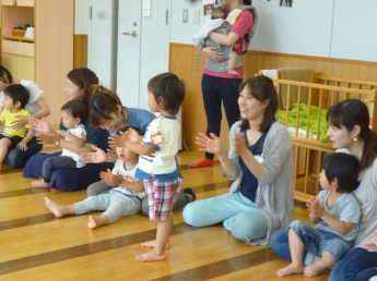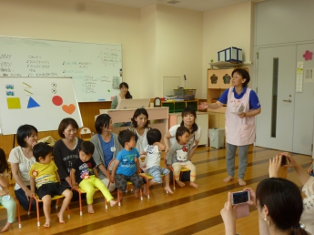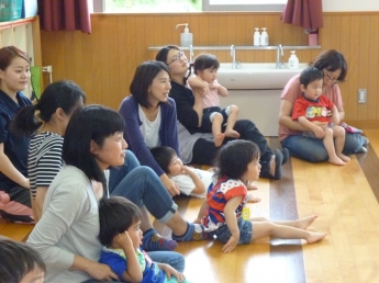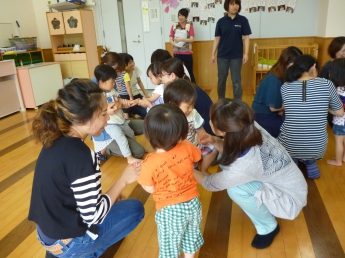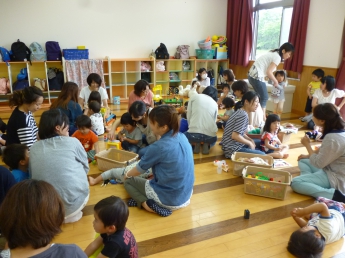 自由遊びの時間。おかあさんも子どもたちも親睦が深まります