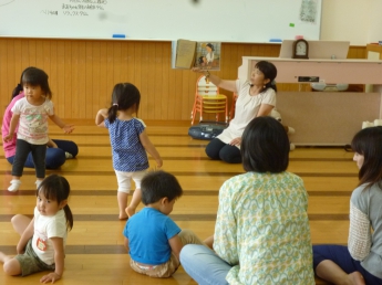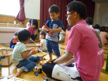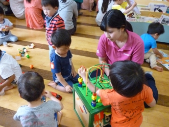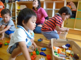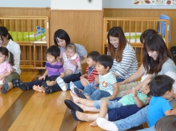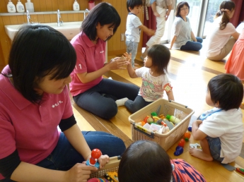 おかあさんから離れることのできる子はお姉さんと遊びましょう
