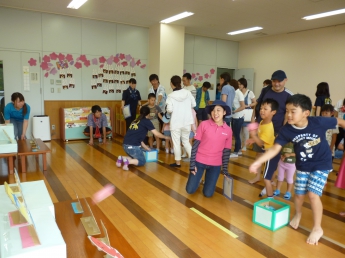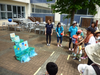 ボール投げブース。どのお魚さんのかごに入るかな?