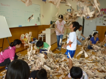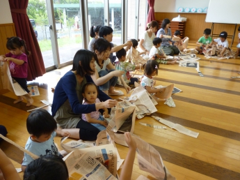 7月27日のポッケ 「新聞遊び、7・8月お誕生会」
