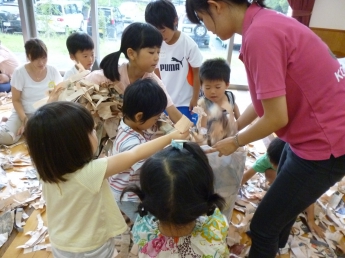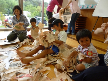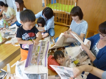 終わった後は、新聞紙を大きな袋に入れてお片付けもばっちり。この大きな袋は、動物さんに変身