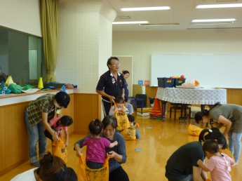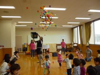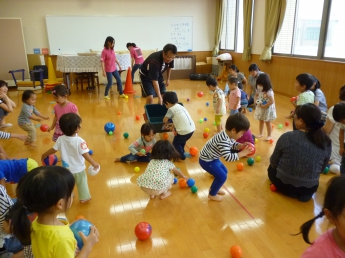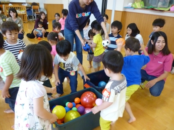 恒例のボールまき。子どもたちは、もうわかっていて待ちかねています