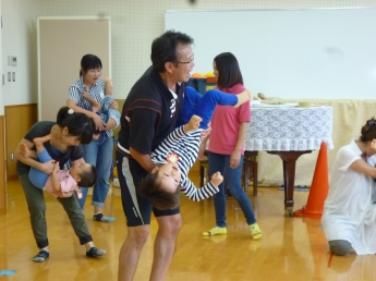 ちょっと休憩。お母さんの肩をたたいてあげよう。お母さんも思わずにっこり