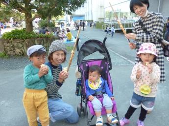 今年も竹巻パンと五平餅販売。五平餅のお米は、大学の田んぼで学生達が育てたお米で作りました