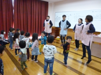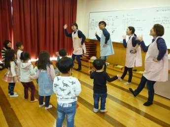 お姉さん先生やお兄さん先生のマネをして踊るよ