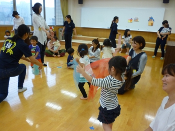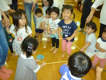 最後にもう一度、みんなでつながった!外は雨がひどかったけど、お部屋の中で元気に遊べました