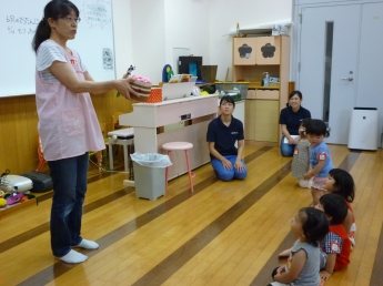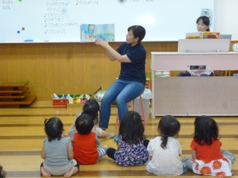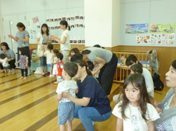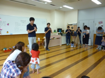 その前に、お姉さん先生・お兄さん先生と親子ふれあいタイムです。元気に体を動かします。