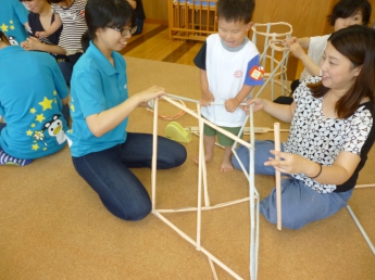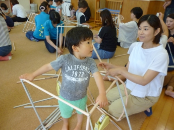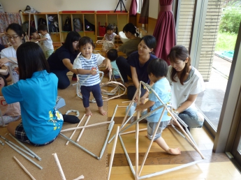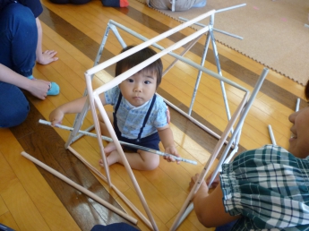 ちょっと休憩してから、第二段階。作った棒で立体的な形を作ります