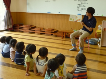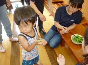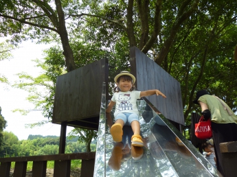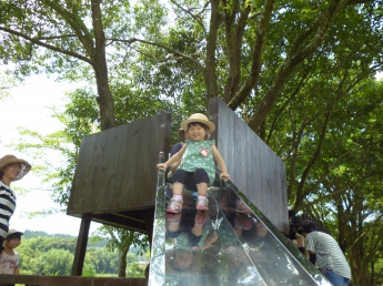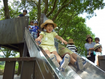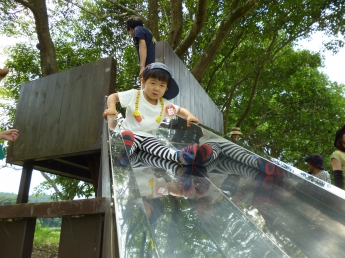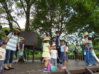 暑い日が続きます。今日はツリーハウスで遊びます。ポッケルームからツリーハウスまでの道のりで夏を見つけましょう。夏の花・草・虫・魚・・・何が見つかるかな?