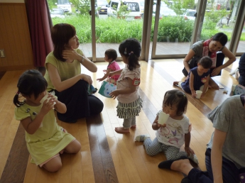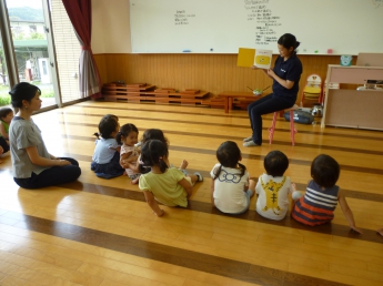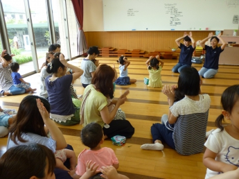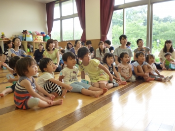 幼稚園のお姉ちゃんにつられて、いつもより前に出て見ています