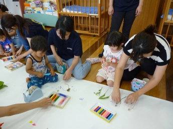 葉っぱも貼ります。ペタペタ、ペタペタ