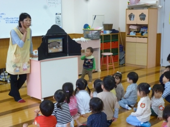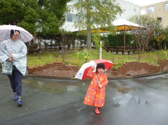 水たまり、楽しいね。雨の日は、雨の日ならではの楽しみが子どもたちにはあります