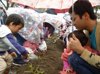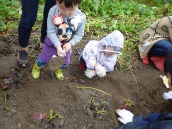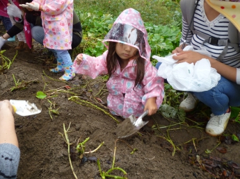 残念ながら雨の日になってしまいましたが、今日は畑でサツマイモ堀り!