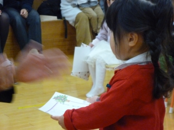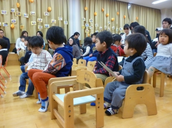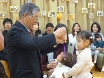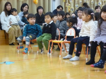 いつもとちょっと違う雰囲気に緊張気味の子も。でも、段々いつもの元気な笑顔の子どもたち。加藤先生の素敵なピアノ演奏で、式が始まりました。