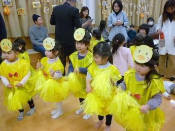 今年はお兄さんお姉さんがひよこの衣装を作ってくれました
