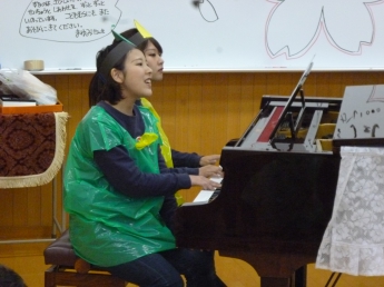 今年度のポッケも今日の修了式で最後。いつもと少し違う雰囲気の中、加藤先生の素敵なピアノ演奏で修了式が始まります。
