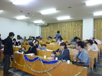 修了式の後は、みんなでお菓子ミニパーティーで親睦をはかりました。お別れするのは淋しいけれど、こどもむらなど大学にはまた、遊びに来てくださいね
