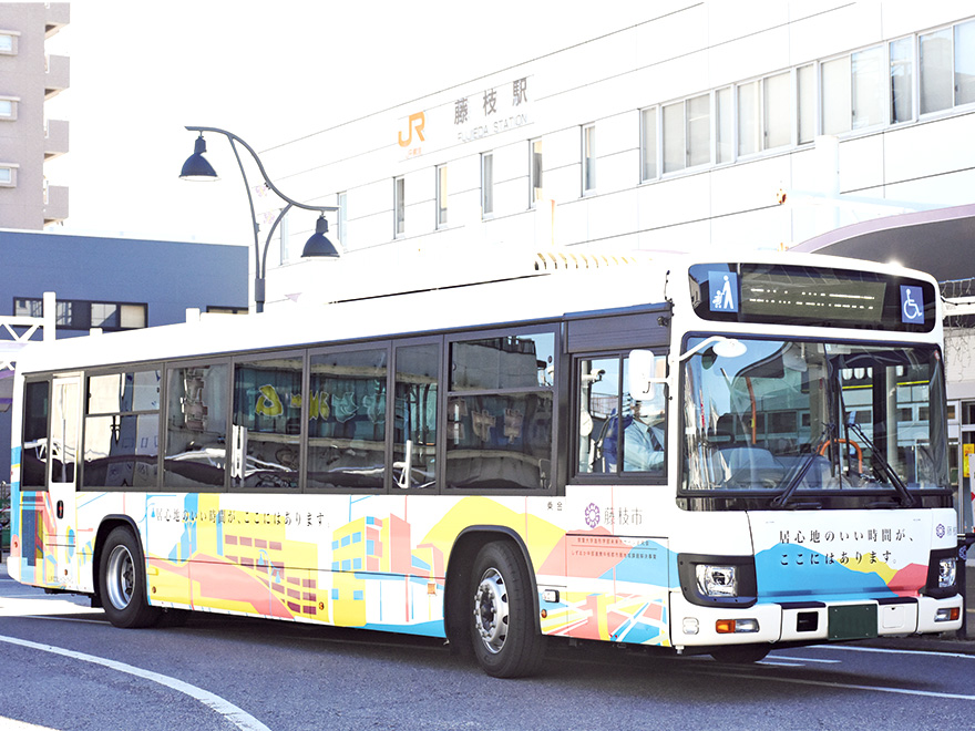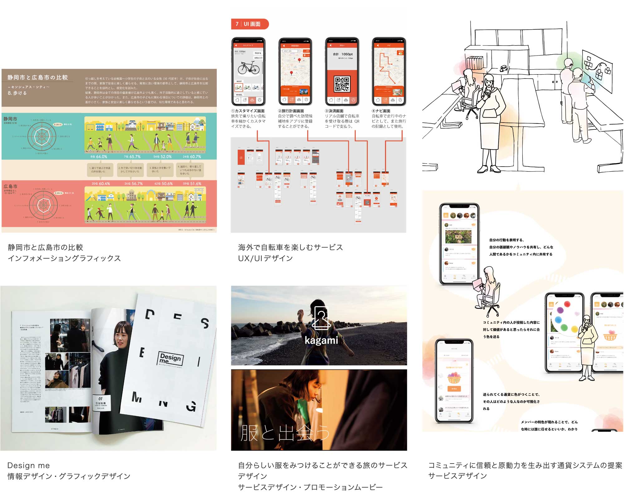 藤枝市と共創し「市民が街を誇りに思える装置」として、路線バスラッピングのプロジェクトを行いました。学生が市民を取材し、暮らしの中で愛着を感じる光景を分析して、それらをビジュアル化しています。デザインによる地域課題の解決を、毎年実践しています。