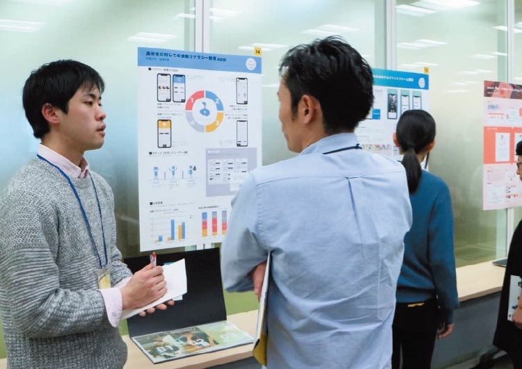デザイン思考を活用して企業の課題解決に挑む、実践的な産学連携授業です。インターンシップの要素を含み、職業観の形成にも寄与します。