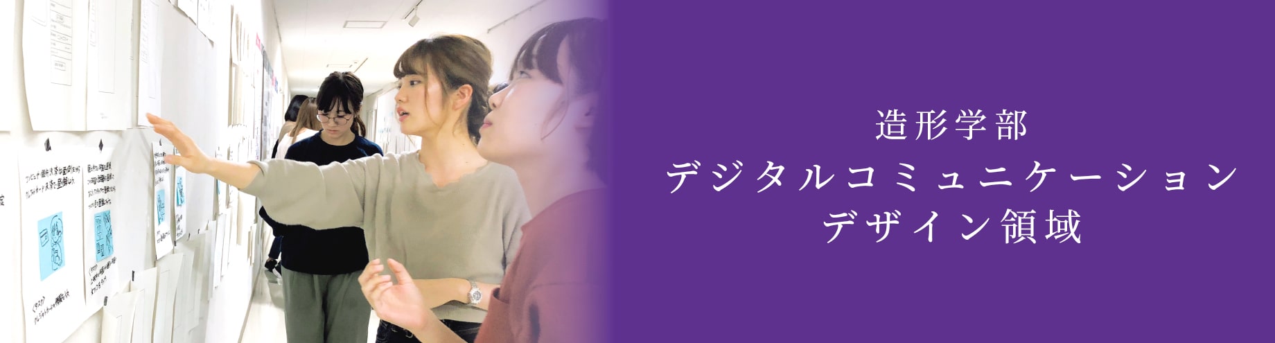 デジタルコミュニケーションデザイン領域の科目では、モノの設計から、人々の豊かな体験を構想するまでの知識と技術を学びます。原点であるグラフィックを基盤に、写真や映像、イラストレーションなどのコンテンツ科目とともに、情報デザイン、UX/UI、サービスデザイン、ソーシャルデザインといった応用科目、社会や産業と繋がるプロジェクト科目で、企画から制作、提案までを学ぶ内容で構成されています。