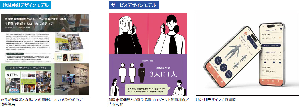 藤枝市と共創し「市民が街を誇りに思える装置」として、路線バスラッピングのプロジェクトを行いました。学生が市民を取材し、暮らしの中で愛着を感じる光景を分析して、それらをビジュアル化しています。デザインによる地域課題の解決を、毎年実践しています。