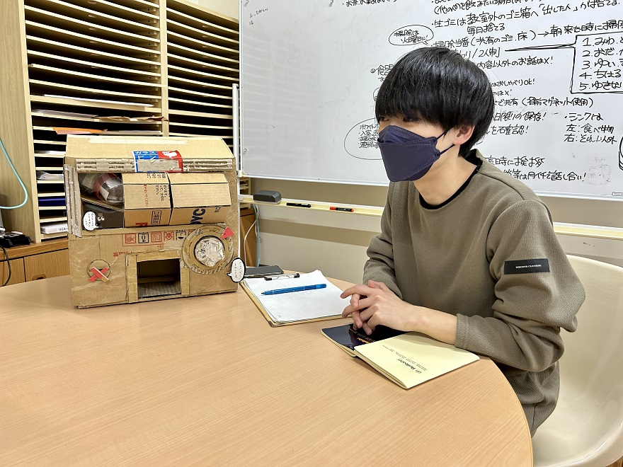 ヒーローはありふれたものだということを伝えるため、ガチャポンをあえて段ボールという身近にあるもので自作しました。「身近な希望を見つけることが将来に対しての希望に繋がると思います」と植松さんは語ってくれました。