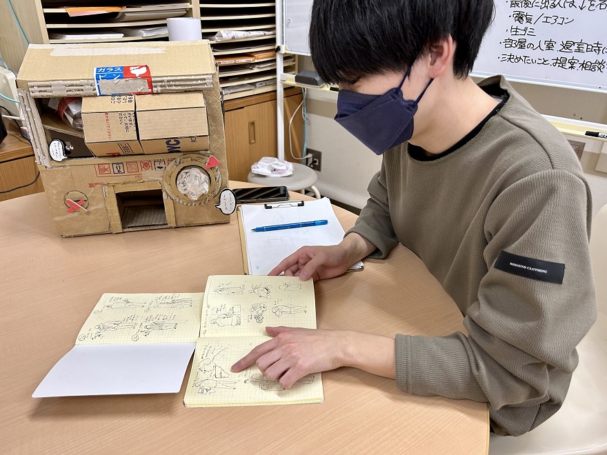 「卒業制作を進める中で、色々な物の見方が変わりました。自分こそが既成概念に囚われていたことをすごく感じましたから、成長することができたと思います。ひとつのものを色々な面から見たり、周りを把握したりする力は身に付いた気がしますね」