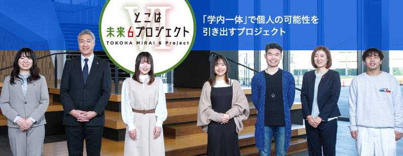 学生が挑戦できる場として立ち上げたのが、教員・職員・学生が協働で学びの場をつくる「とこは未来6プロジェクト」です。10学部19学科のスケールメリットを活かし、学部・学科の枠を超えて協同事業を生み出すプロジェクトを展開しています。例えば地域・社会貢献活動を通して社会人基礎力を養成するプログラム「MIRAIアクションプラン」では、修了認定者に「とこはMIRAIフェロー」の称号を授与し、2025年度に初のフェローが誕生しています。