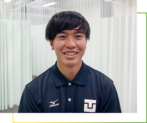 高校2年生の頃に腰椎分離症になり、痛みなどでサッカー部の活動に支障をきたすようになりました。その際、痛みなどのケアでお世話になったのが鍼灸治療でした。施術を受けてみて、痛みの緩和などに効果を実感し、高校卒業後は鍼灸を学びたいと思いました。常葉大学は、国家資格取得のための勉強を行いながら部活動を行うことができる数少ない大学の一つであり、加えてサッカー部ではレベルの高い環境に身を置きプレーすることができるため志望しました。