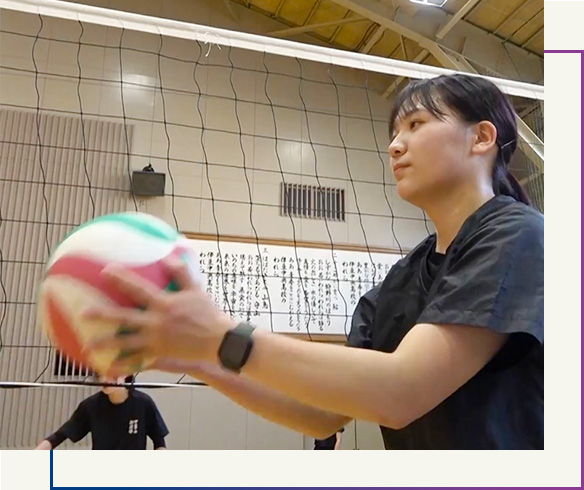バレーボールは以前からやっていましたが指導の経験はなかったので、力不足を感じることばかりでした。しかし、自分なりに練習法などを調べたり、自分の指導をしてくださった方々に話を聞きに行ったりと努力を重ねるうちに、徐々に生徒との会話も増え、相談も受けるようになり、信頼関係を築くことができました。相手の表情をよく観察したからこそ、生徒の気持ちに気づくことができ、良い方向に向かうことができました。この経験は将来の教員という仕事に活きると思います。