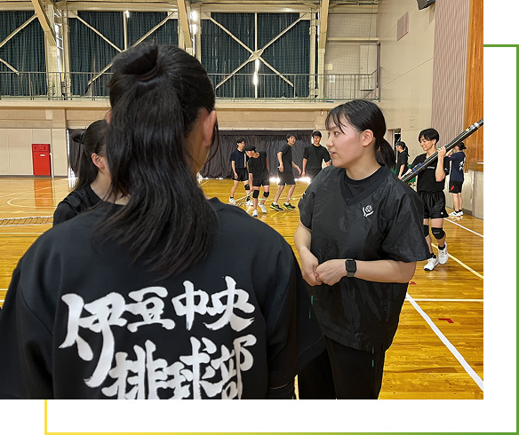 静岡県が行っている「大学生による部活動支援ボランティア事業」に参加し、母校の高校で女子バレー部を指導しています。この事業は、地域社会に貢献したい大学生や教員を目指す大学生がボランティアで学校の部活動を支援するもの。練習メニューの提案やアドバイス、サポートを行うほか、練習試合や大会での引率や審判なども行います。