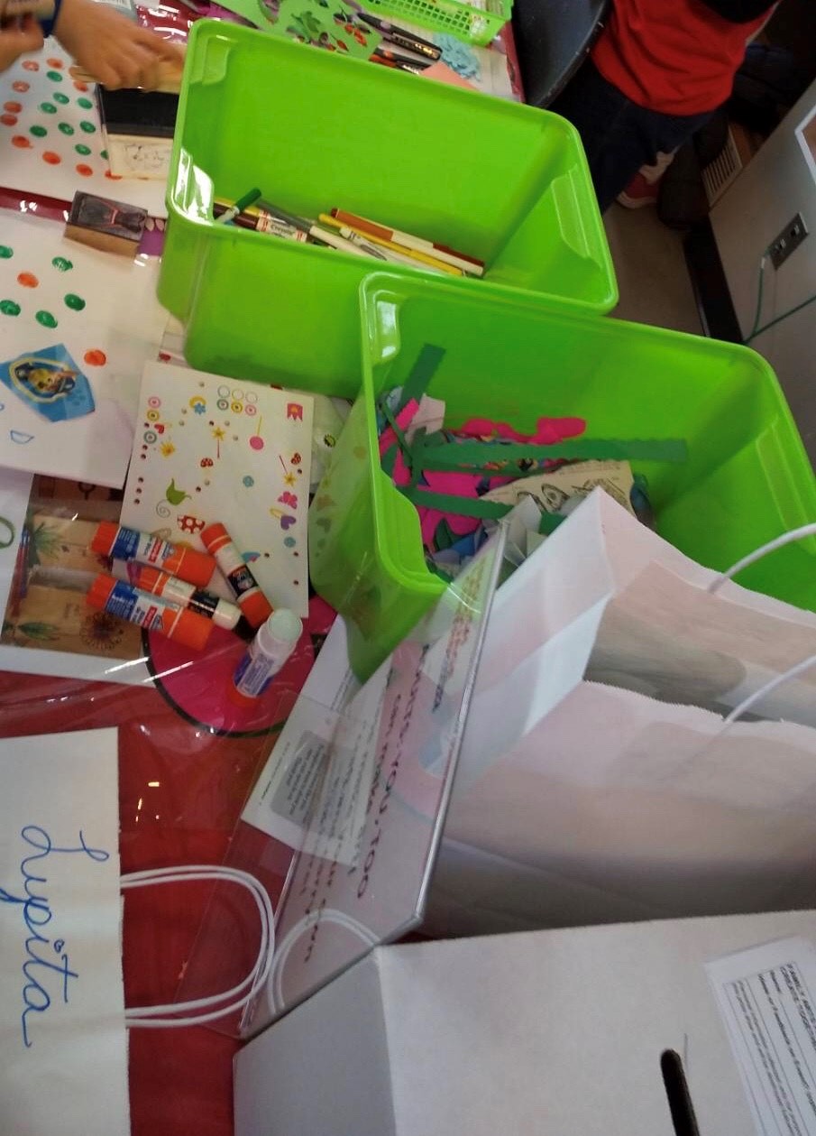 私の仕事は、子供たちが作った作品を入れる紙袋に、デコレーションができるブースにいました。