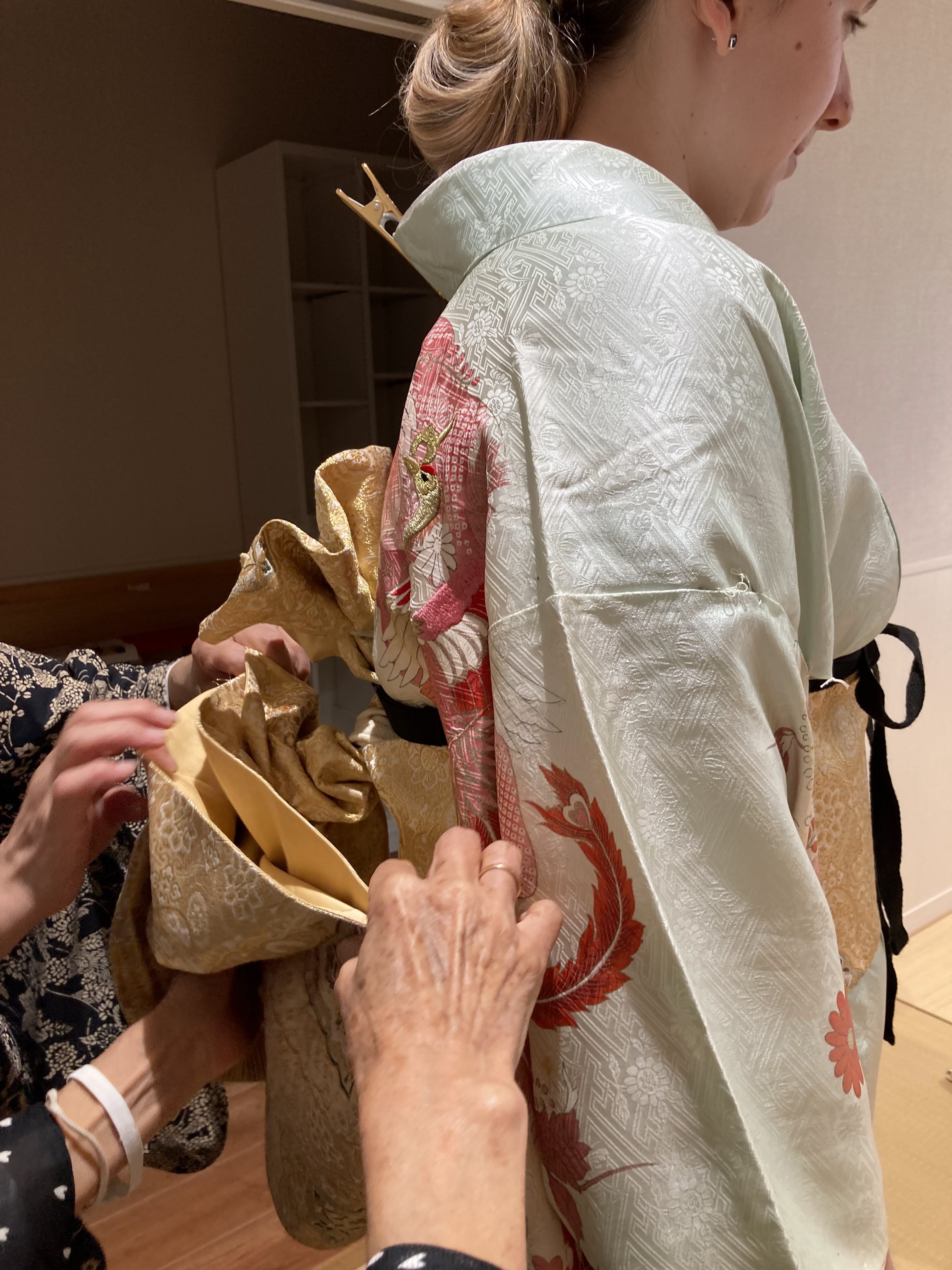 殆どのアメリカ人の留学生は、渡日が初めての体験となる一方で、着物の着付けはリラックスして和やかな雰囲気で行われました。