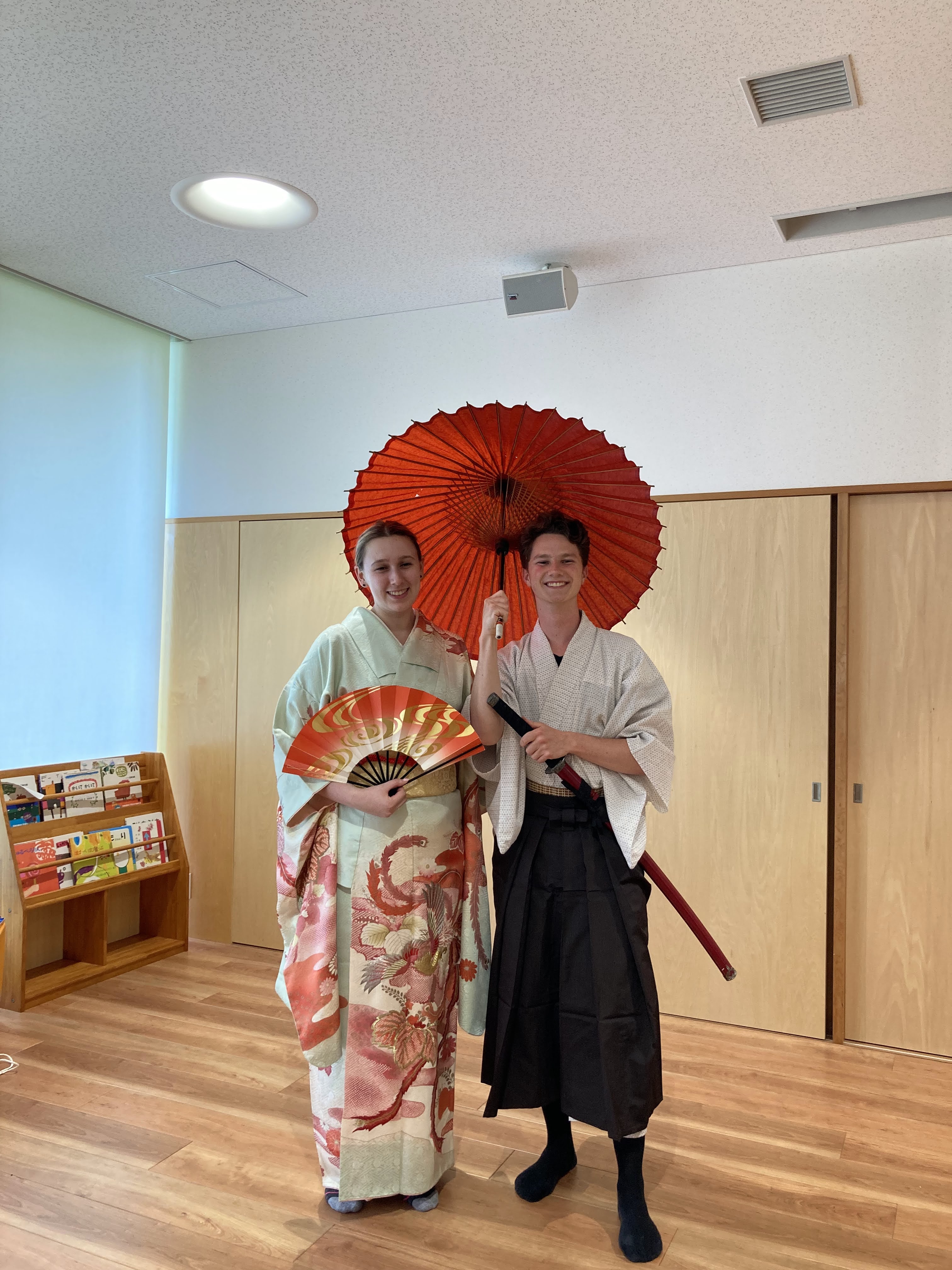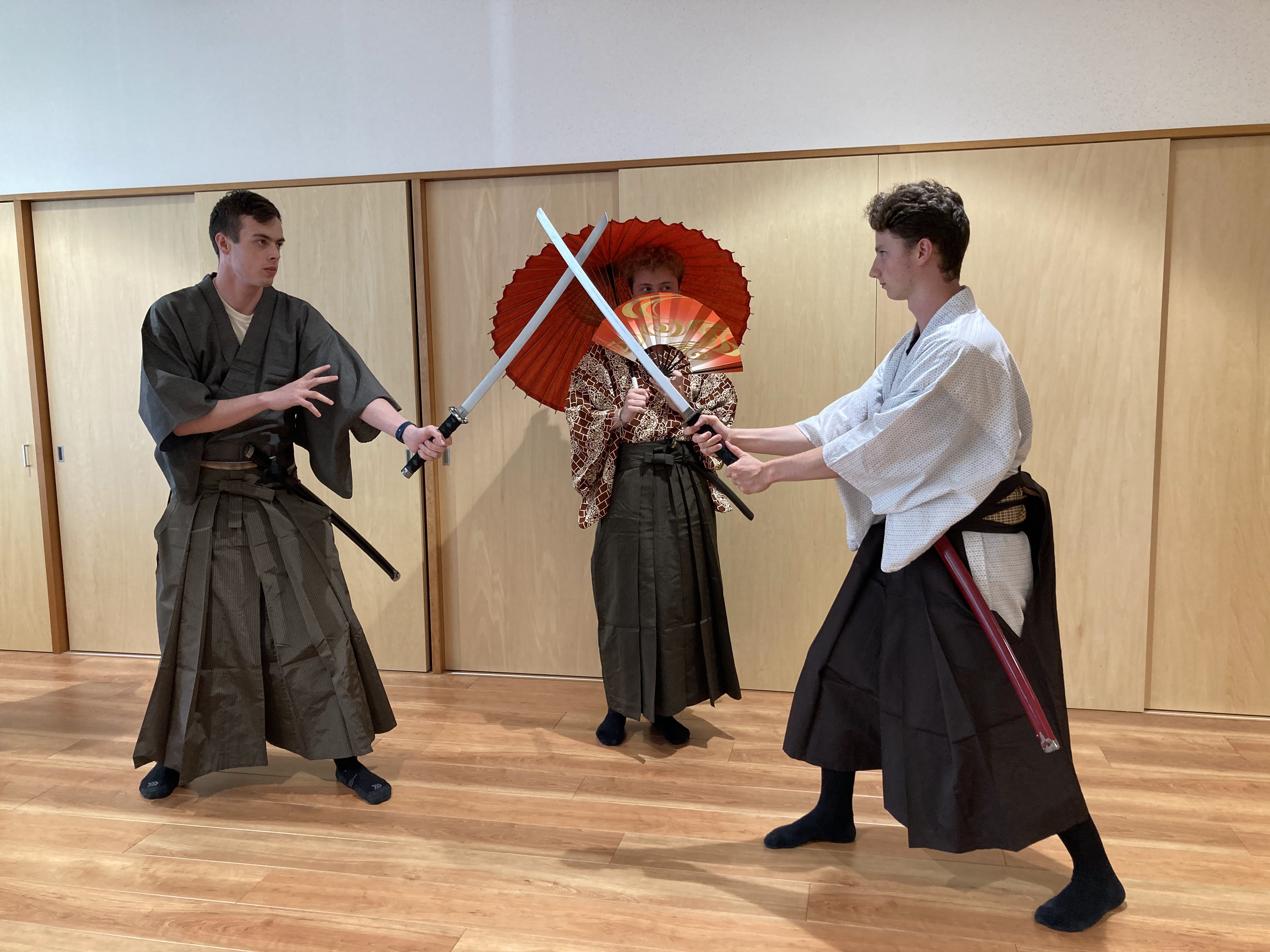 着付けが完了すると日本刀や日本傘を手にした留学生が、より一層、日本文化を堪能した様子でした。