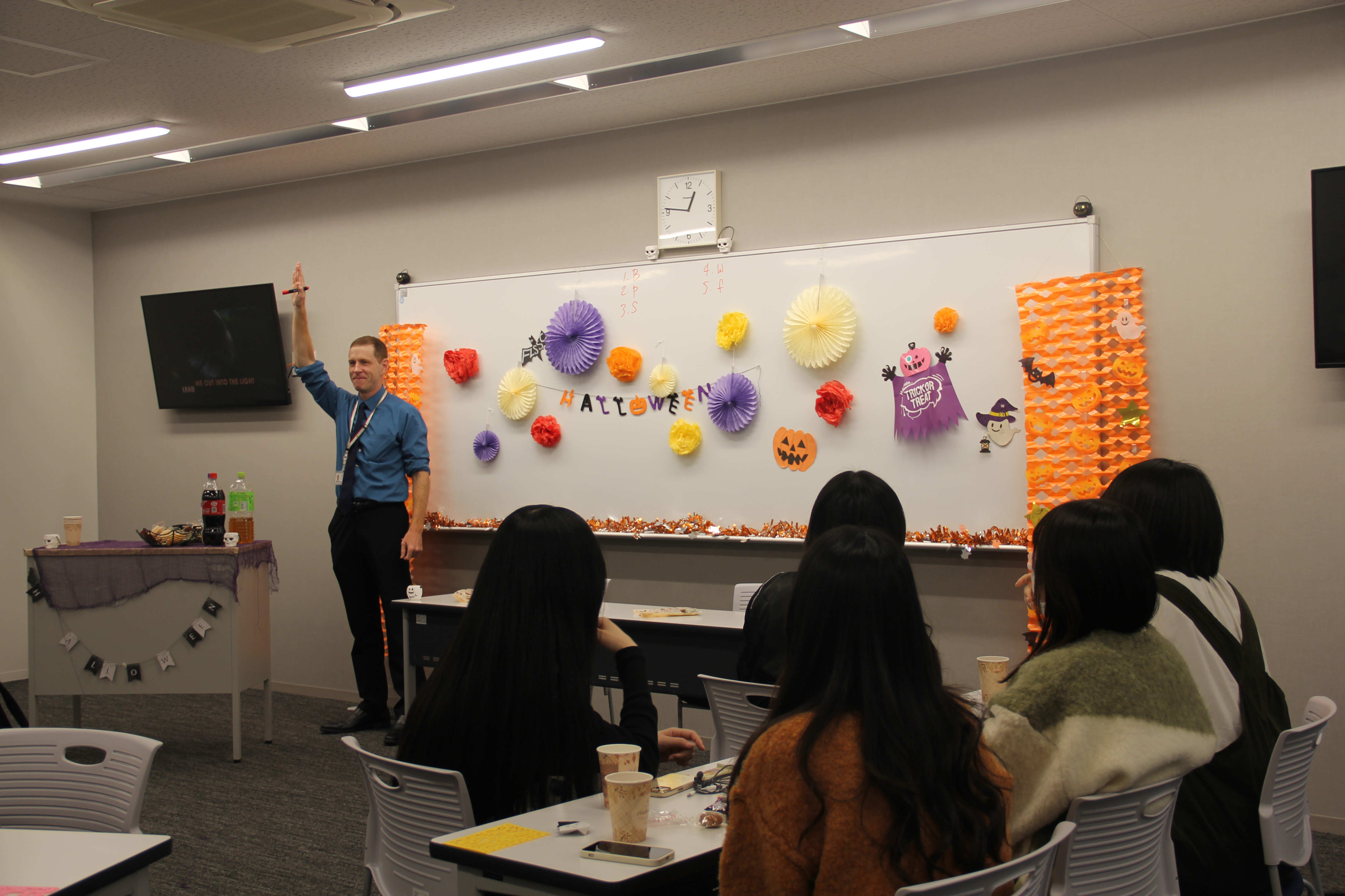 ・英語でハロウィンについてお話が聞けるのが楽しかったです。トイレットペーパーを使ったいたずらを実際にやっていることにとても驚きました。また、ジャック・オー・ランタン作りやお菓子をたくさんたべられて最高でした。ありがとうございました。