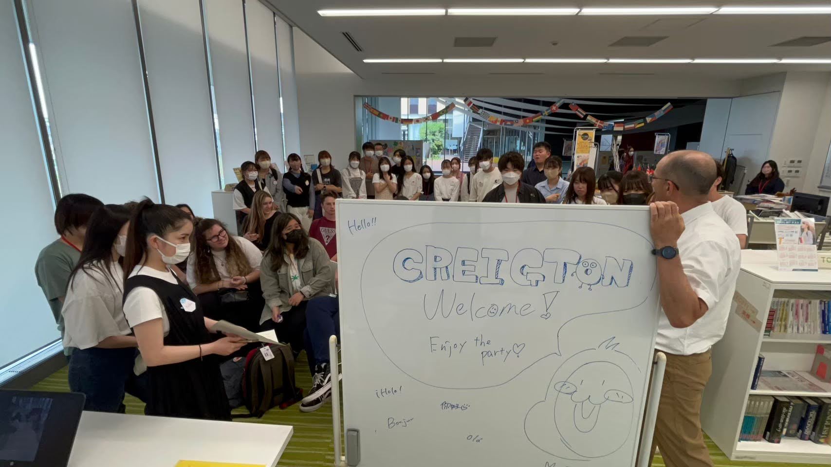 FLSSCが主催する国際交流のイベントの一環として、クレイトン大学の学生をゲストに招き、英語と日本語の二言語での交流イベントが開催されました。アイスブレイクやカードゲームなどを通して、日本語を学ぶクレイトン大学生と、英語を学ぶ常葉大学生の双方に学びがあるイベントとなりました。