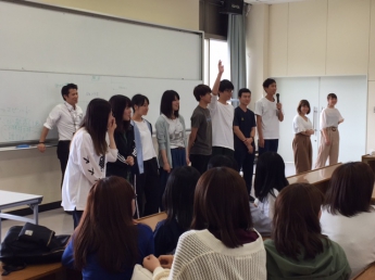 お寺でのセミナーを終え、大学へ戻ってきてからは学生委員による学部プログラムです。両学科混合でグループになり、メンバー同士の結束を高め、理学療法学科と作業療法学科の交流を図る意味でも意義のあるプログラムでした。これから四年間、しっかり学んでいきましょう!