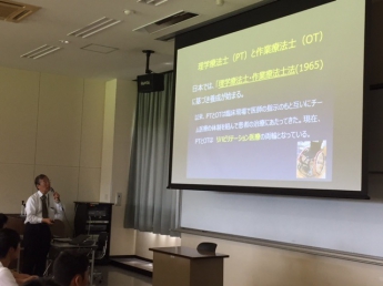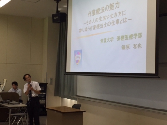 同じく21日の作業療法学科の模擬授業は、篠原准教授による「作業療法の魅力」でした。リハビリテーションの中の作業療法の位置づけなど、とても分かりやすく説明しました。