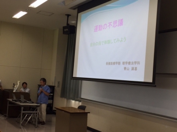 21日の理学療法学科の模擬授業は、青山准教授の「運動の不思議」でした。
