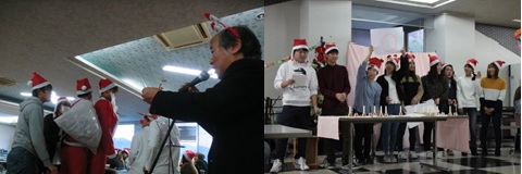 作業療法学科の臨床実習前の事前実習(レクリエーション体験)として、12月14日に1・2年生合同でクリスマス会を開催しました。