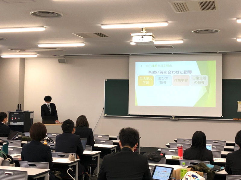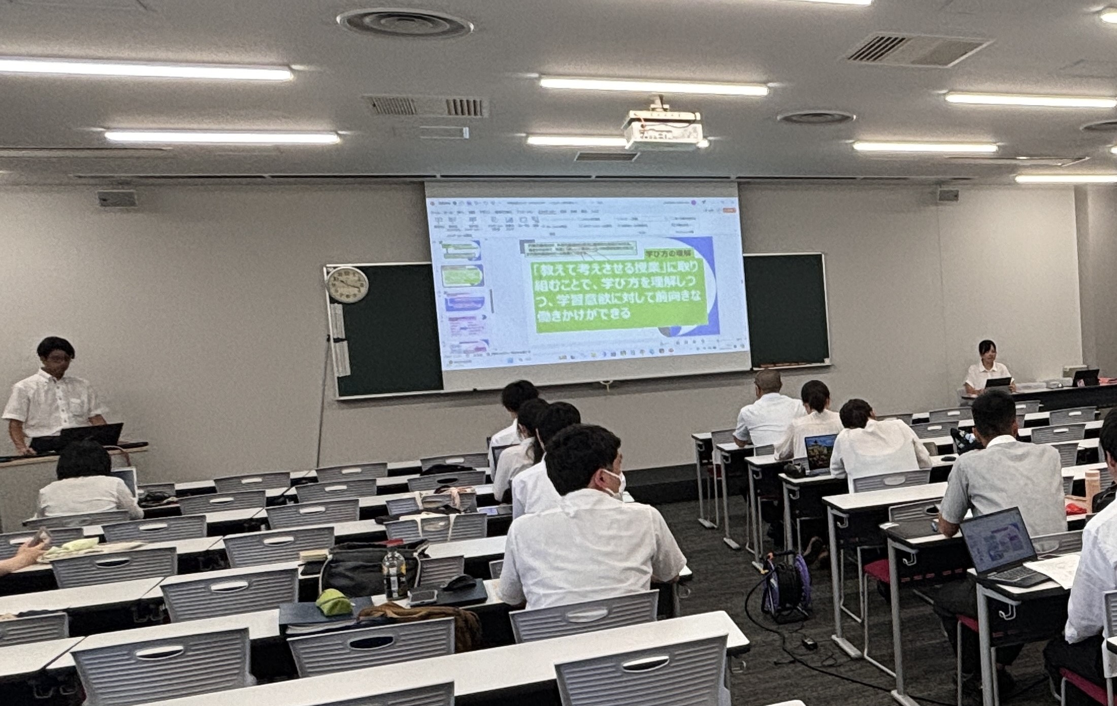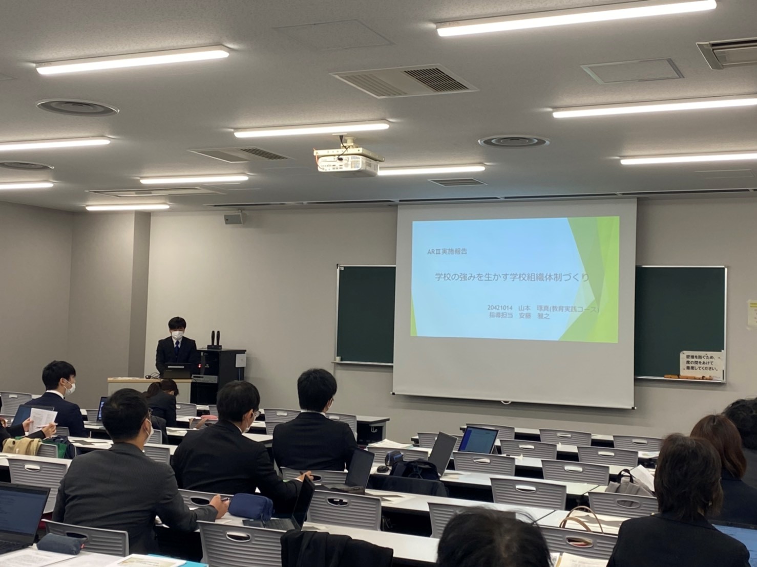 - 現職教員学生による、課題研究の中間発表会が行われました。