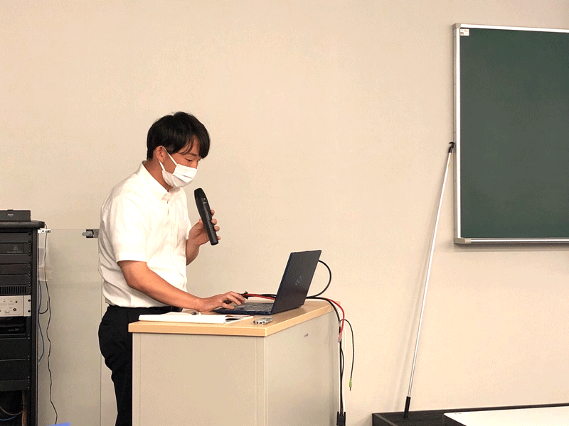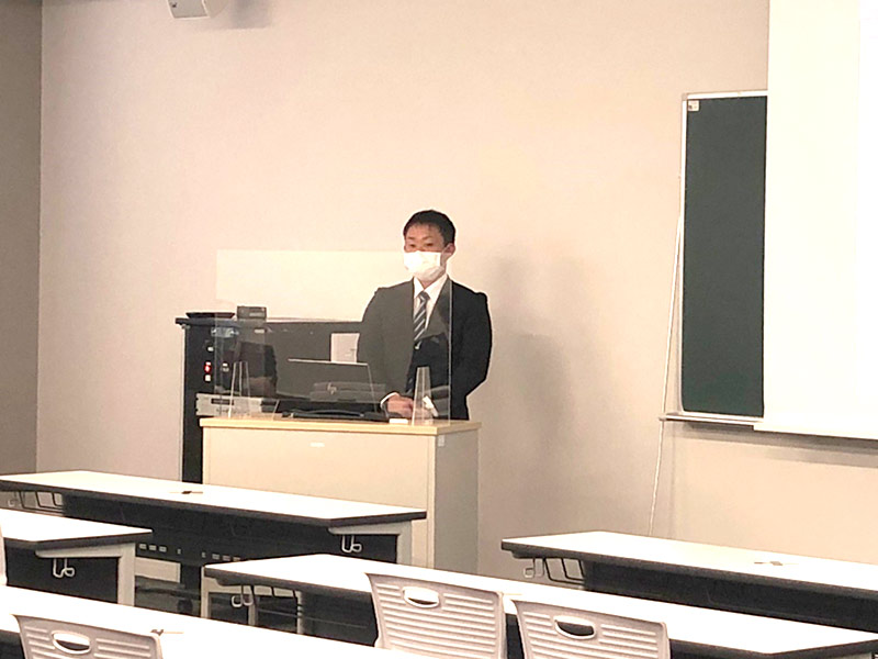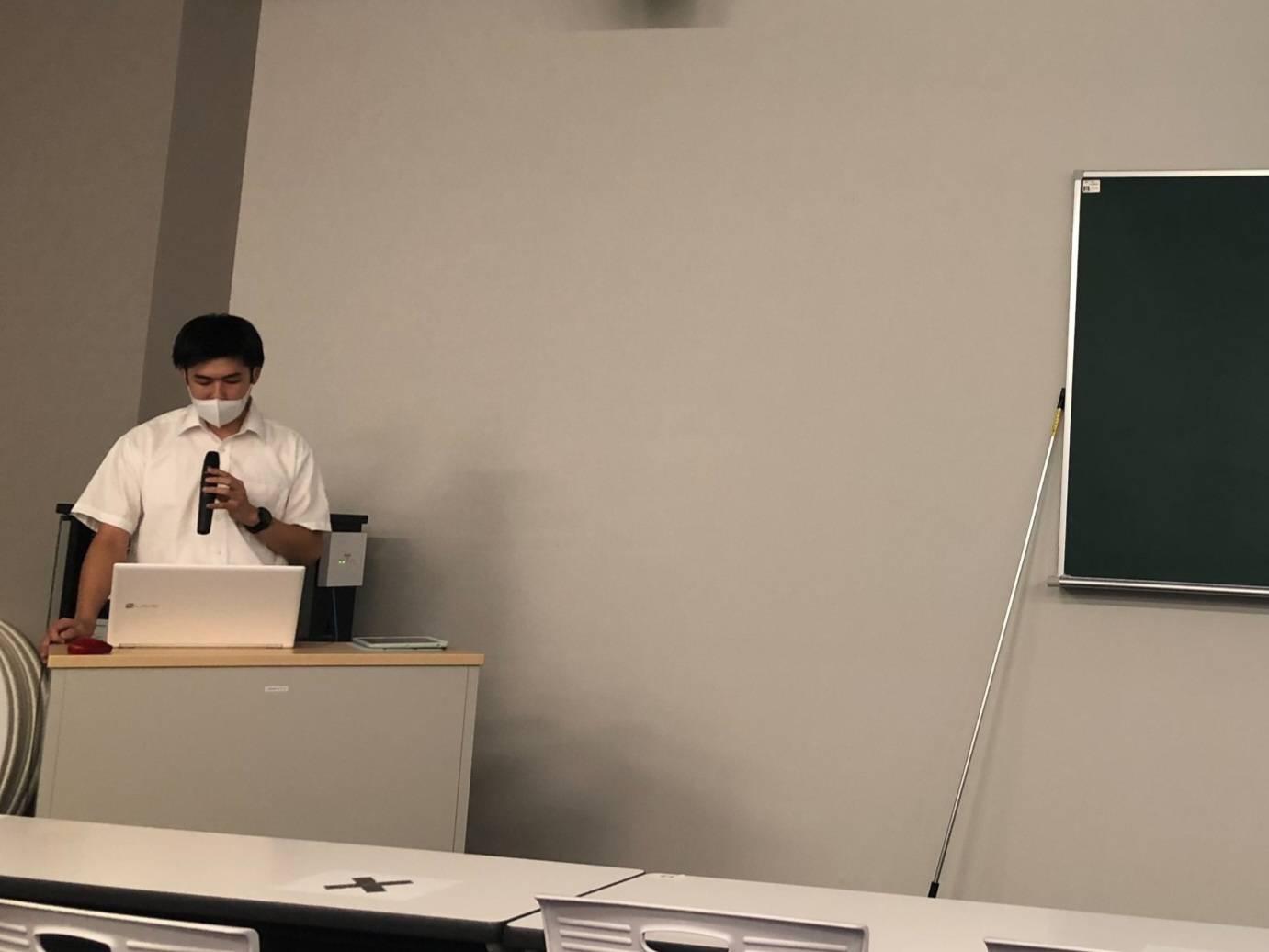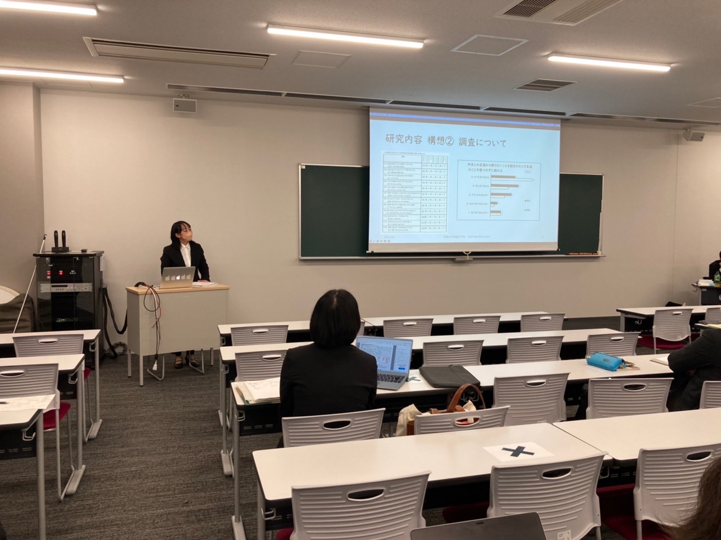 - 大学の先生方に向けて、自らの研究の構想を伝えました。