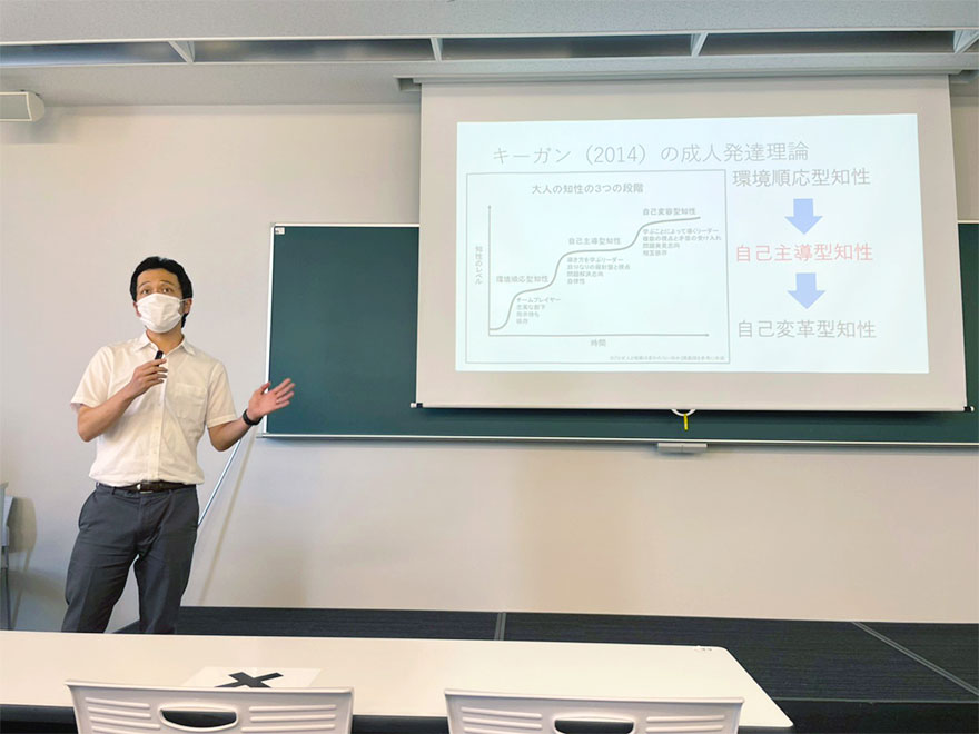 - 受講している授業の様子を紹介します。今回は「職能開発と研修プログラム開発研究」という授業です。