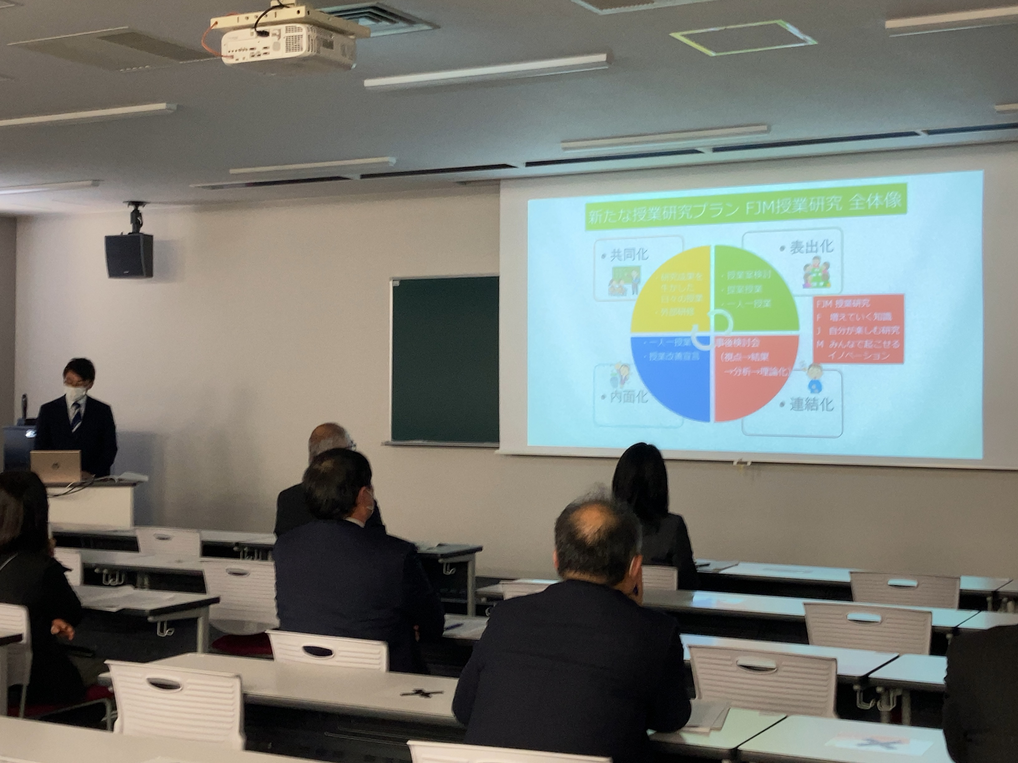 - 11月19日、アクションリサーチⅠ の成果報告会が行われました。教育課程連携協議会の委員の方に参観していただきました。