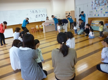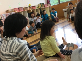 膝の上で「バスに乗って…♪」など大喜びな子どもたちでした。