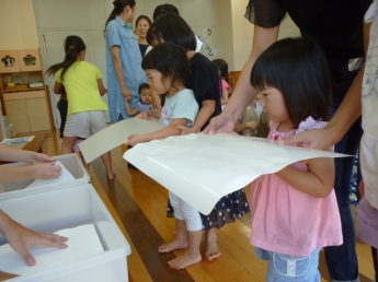 水に浸しておいた画用紙を大事そうに受け取ります。
