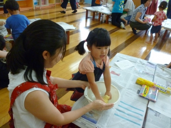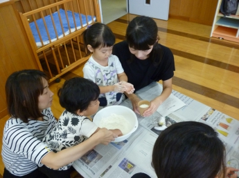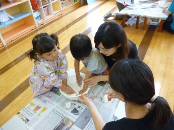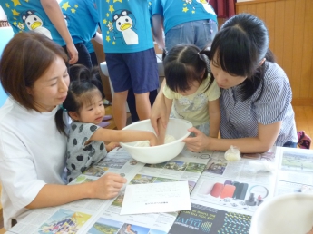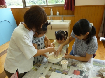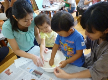 混ぜ続けるよ~とお母様たちもコネコネ…