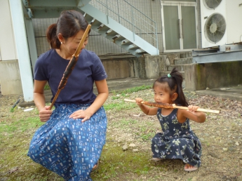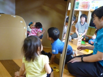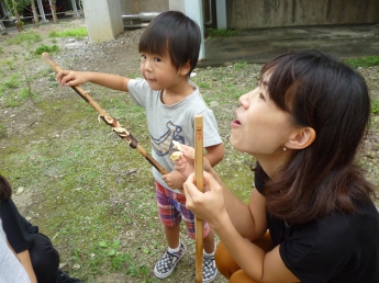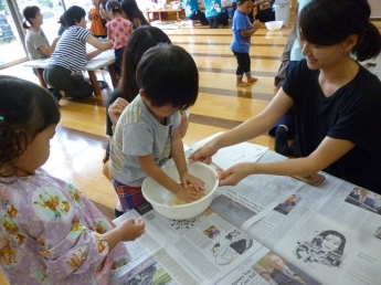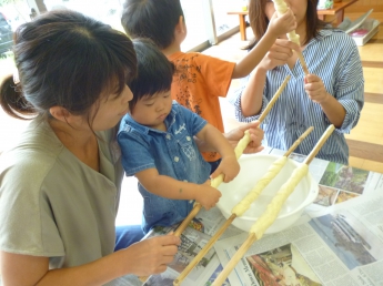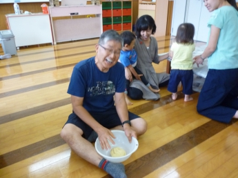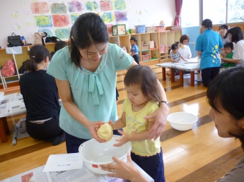 発酵を待つ間、親子遊びをしたり、学生と遊んだり…。