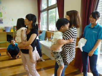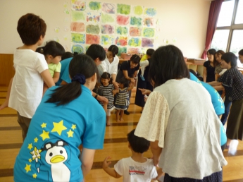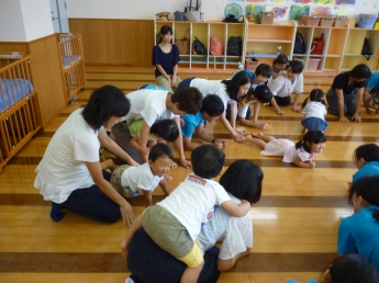 わらべうたは耳に、身体に馴染むなあ。とやっぱり今回も思いました。終わってからも子どもが口ずさんでいましたもの。これぞ、わらべうた!担当していただいた堀田先生も子どもたちもお母様方も学生も自然に声を出して歌い遊びました。