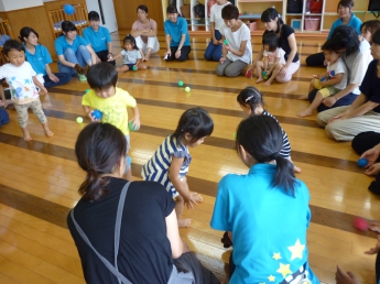 わらべうたの音にのせてボールをころころ~